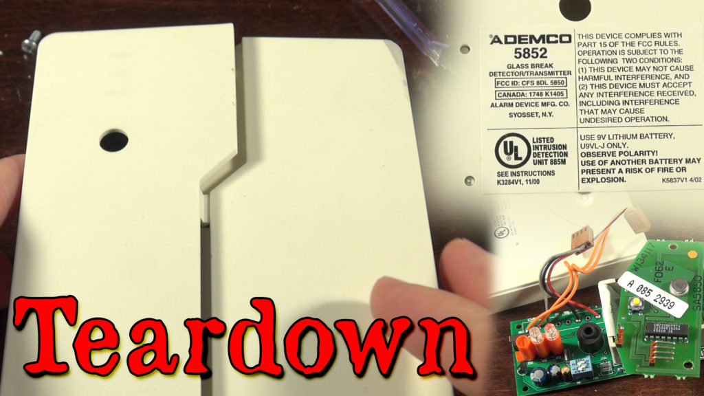 Nick's Electronics Glass Break Detector Teardown Teardown of a fairly old Ademco 5852 Glass Break Detector and Transmitter. Designed so if someone shatters a window, it trips the alarm. October 21, 2016/by Nick Drudge https://www.drudge.tv/wp-content/uploads/2017/06/0045.jpg 1080 1920 Nick Drudge https://www.drudge.tv/wp-content/uploads/2017/06/dtv-logo.png Nick Drudge2016-10-21 11:00:332017-06-03 19:53:04Glass Break Detector Teardown